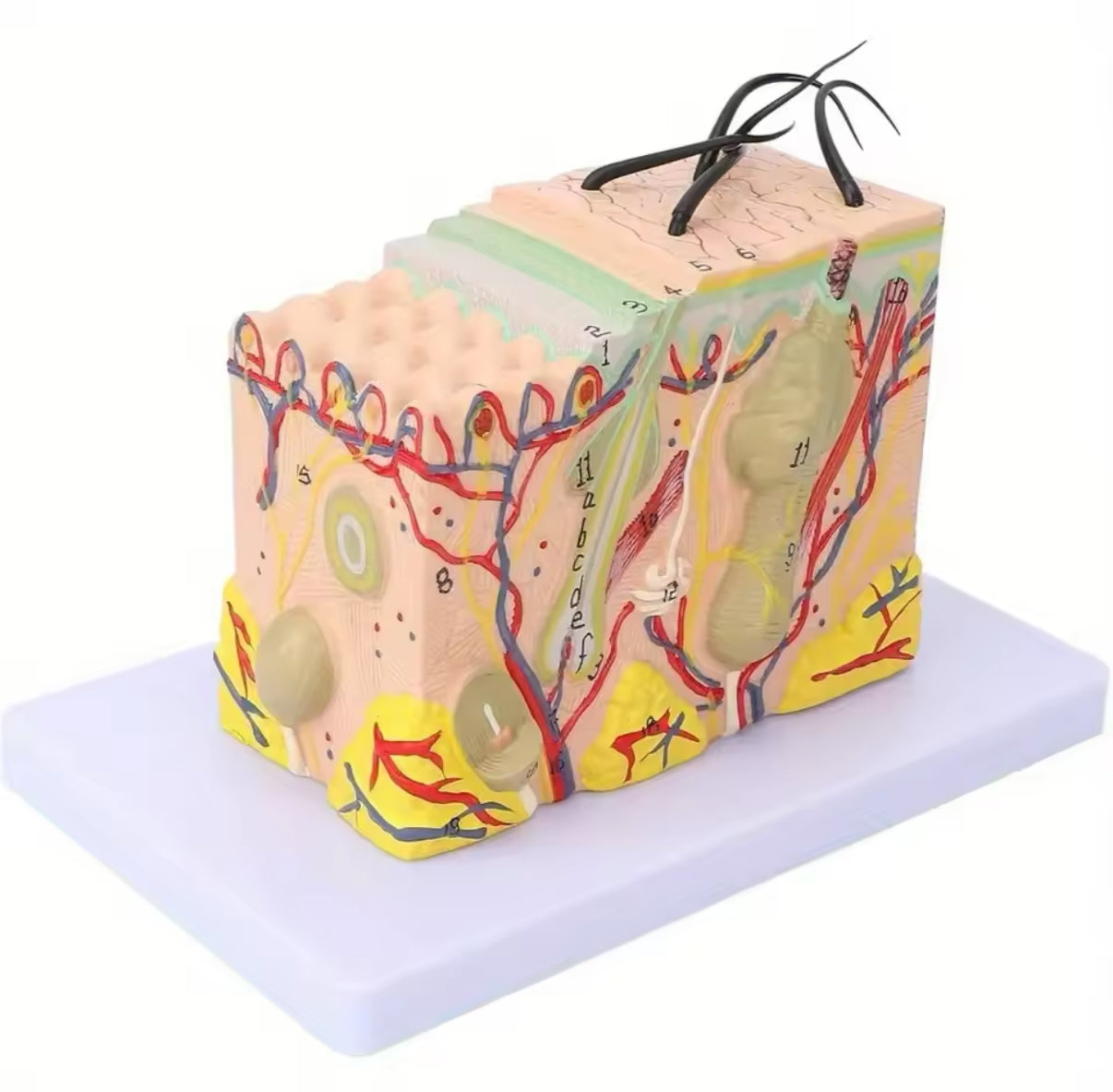 Modelo anatómico de estructura de tejido de piel humana ampliado 35X veces.