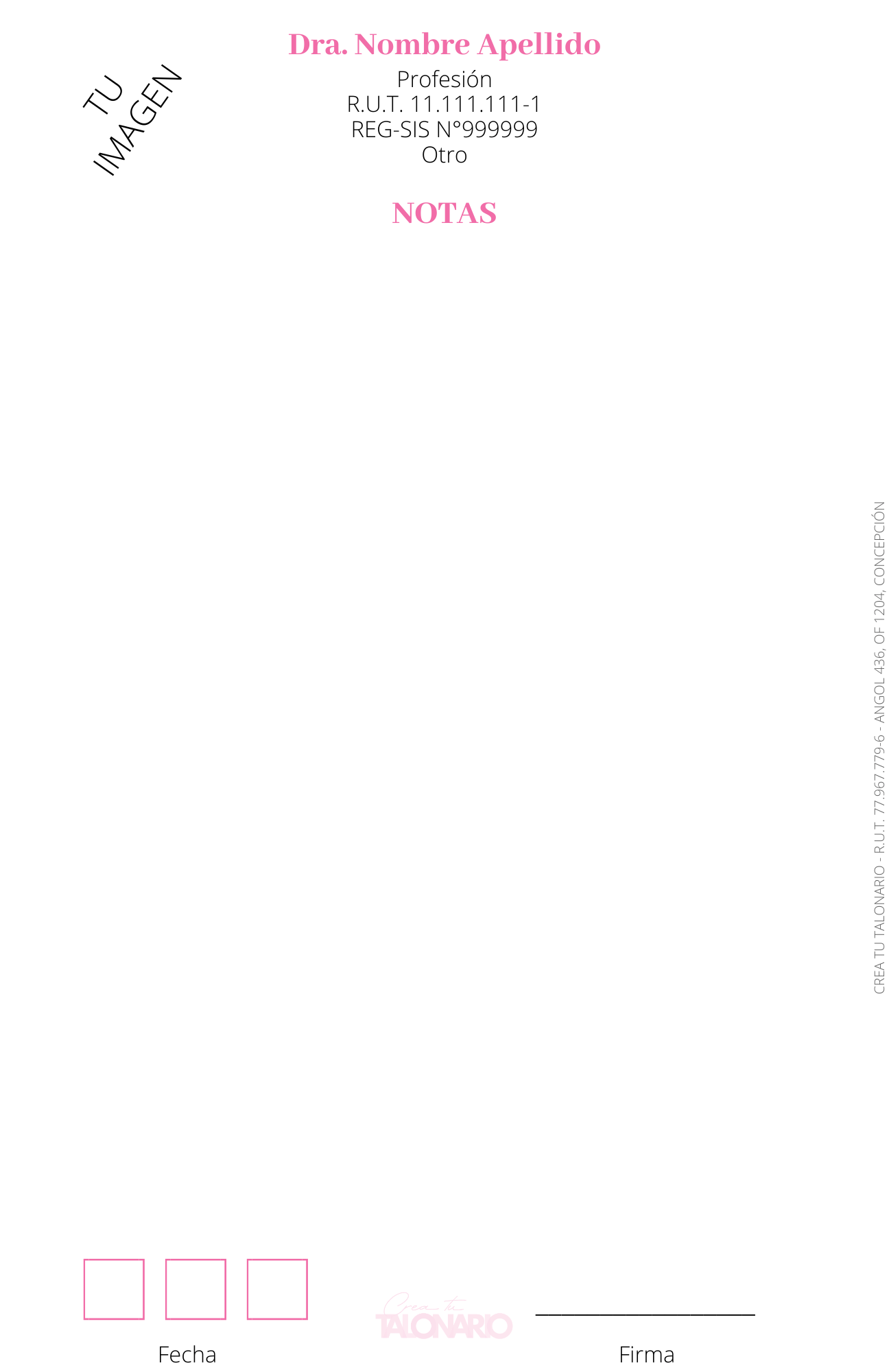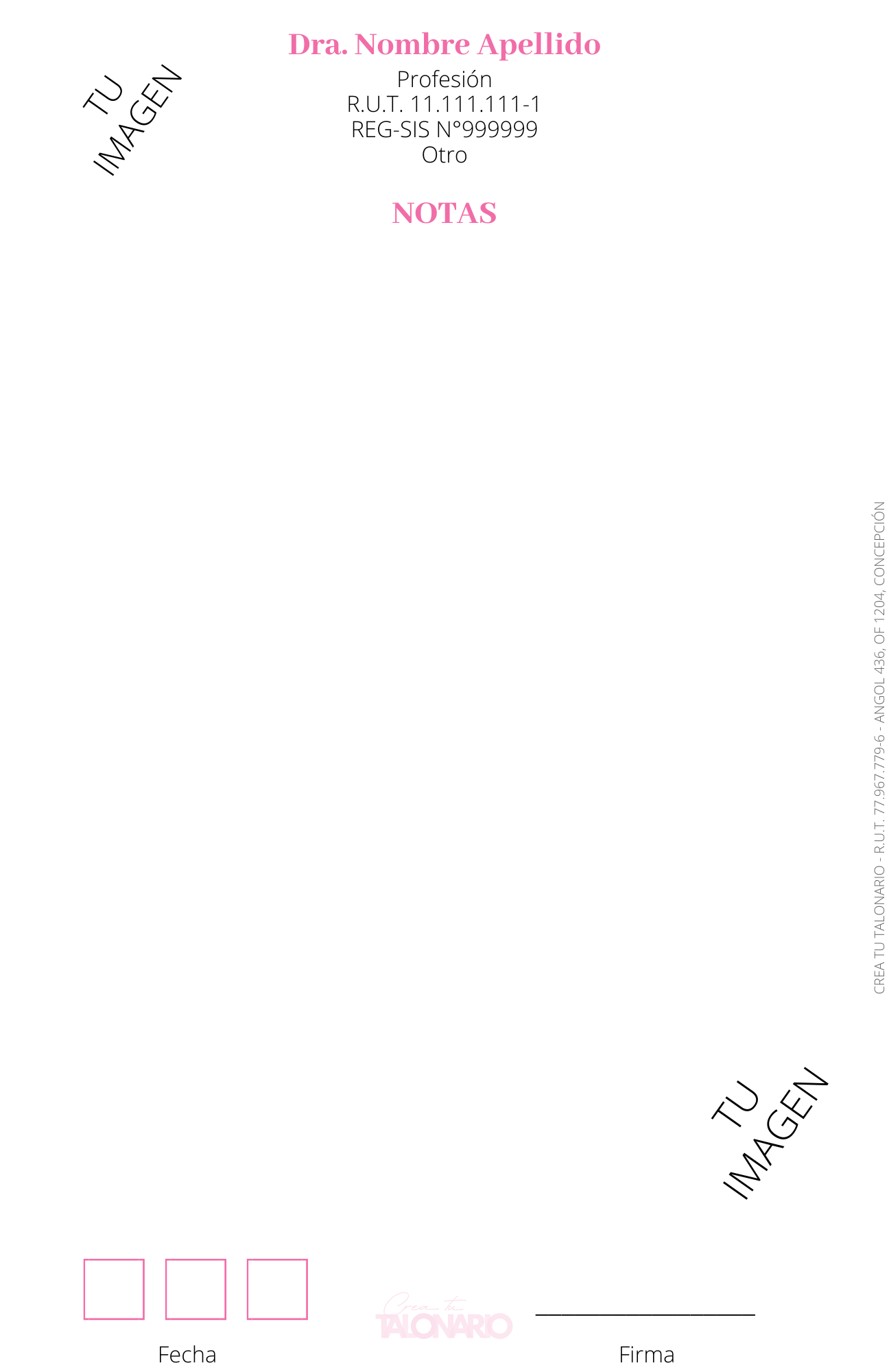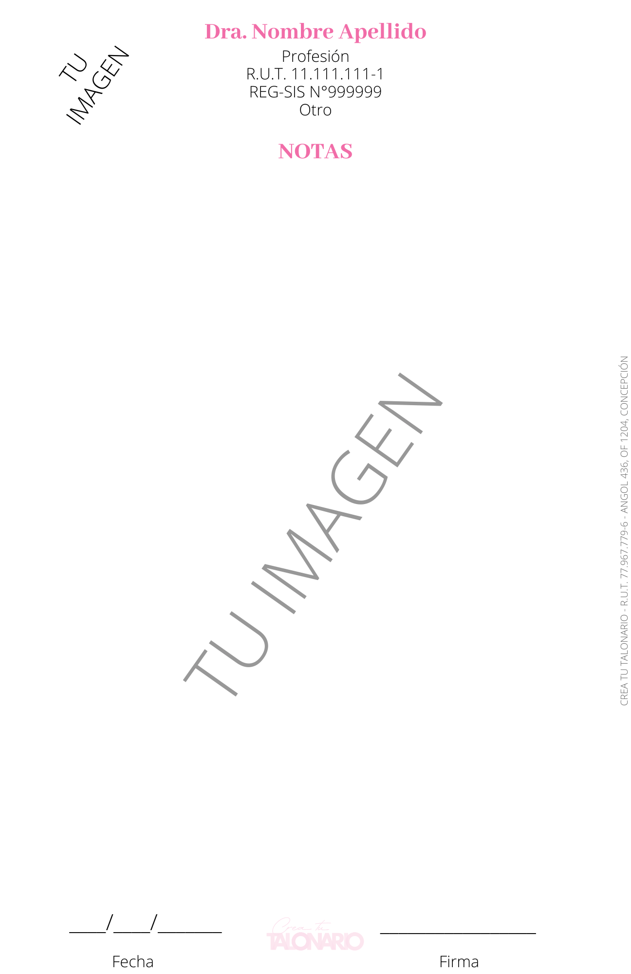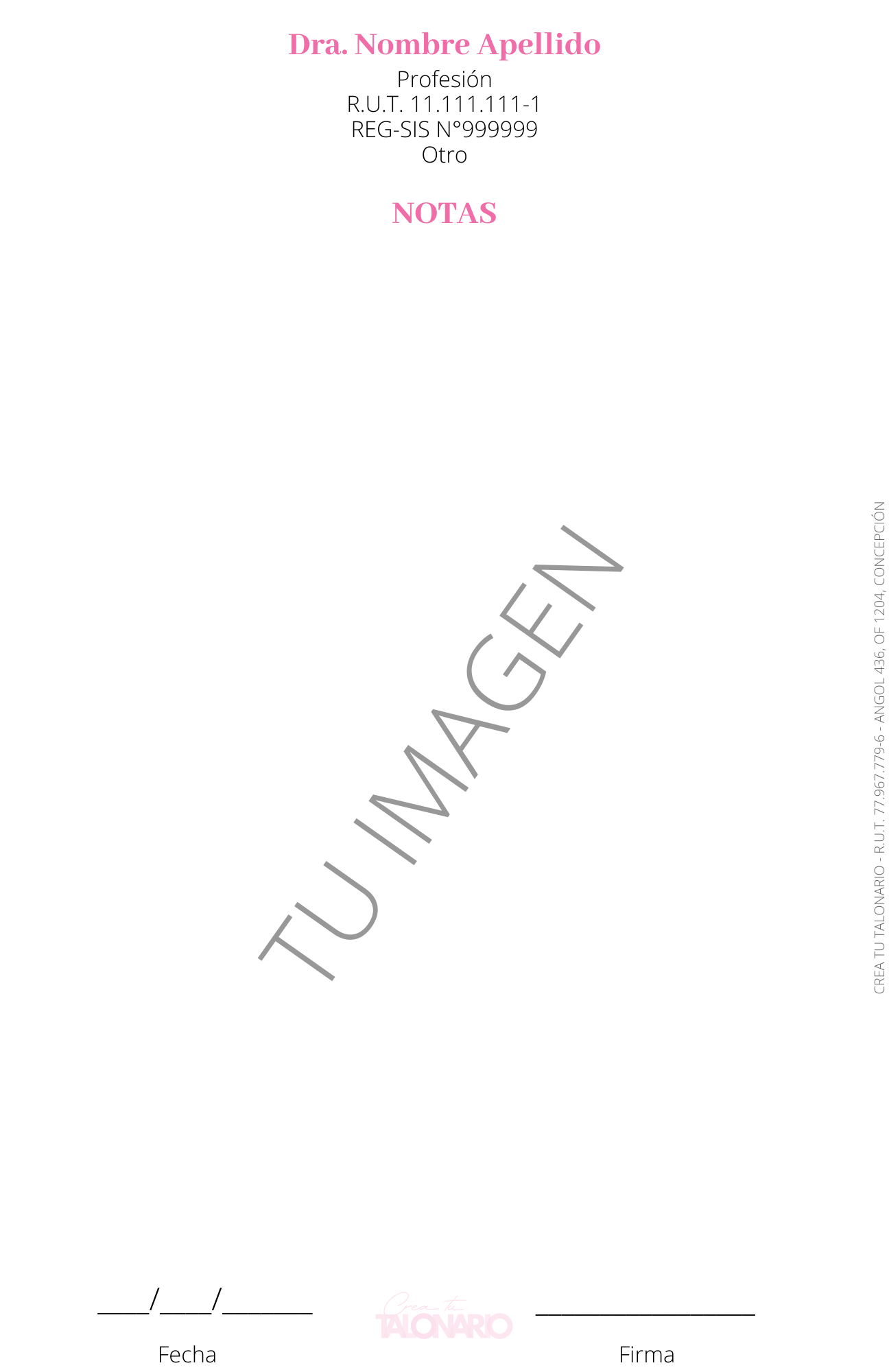 Talonario para Nutricionista 100 hojas personalizado
