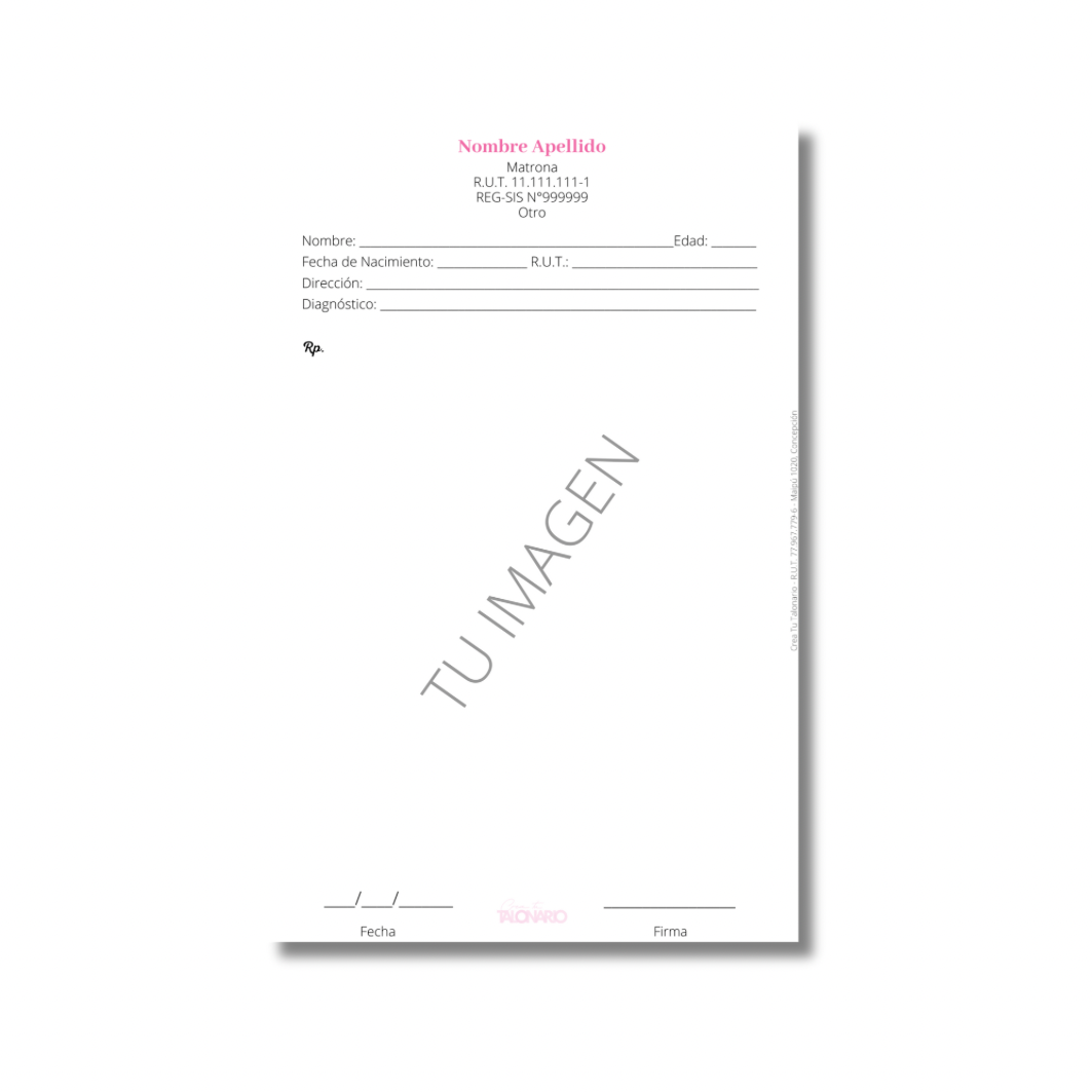 Talonario para Odontólogos personalizado - 100 hojas